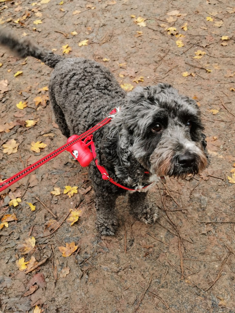 Our Cockapoo (Meg) enjoys walks despite getting muddy paws.