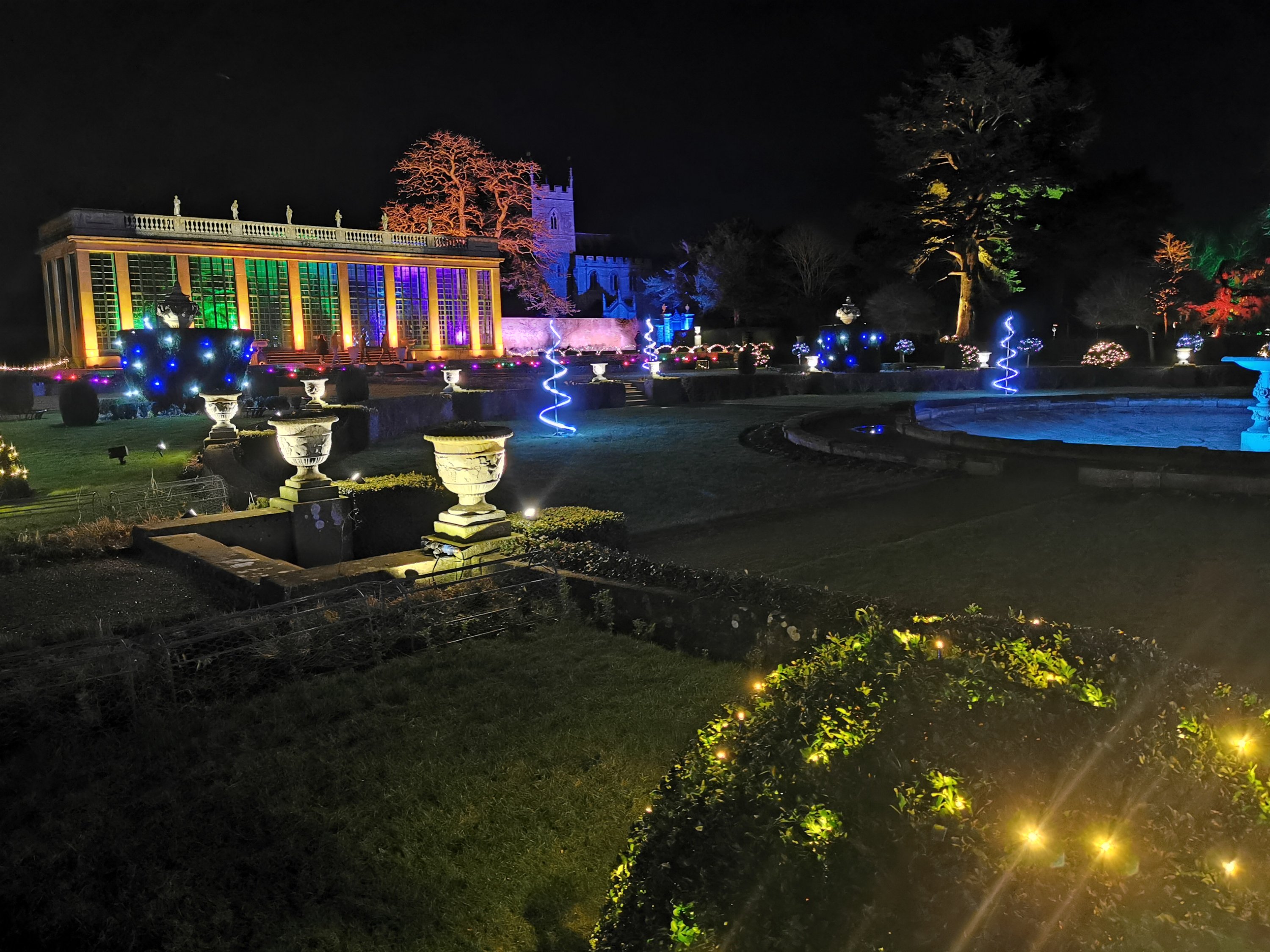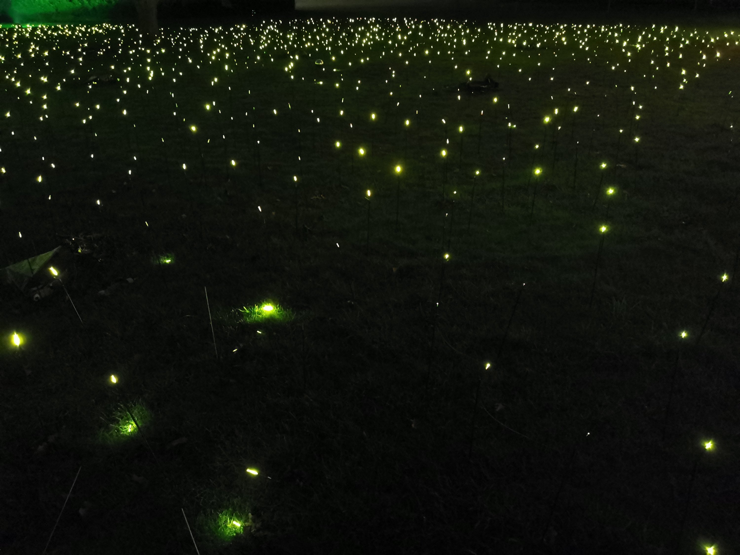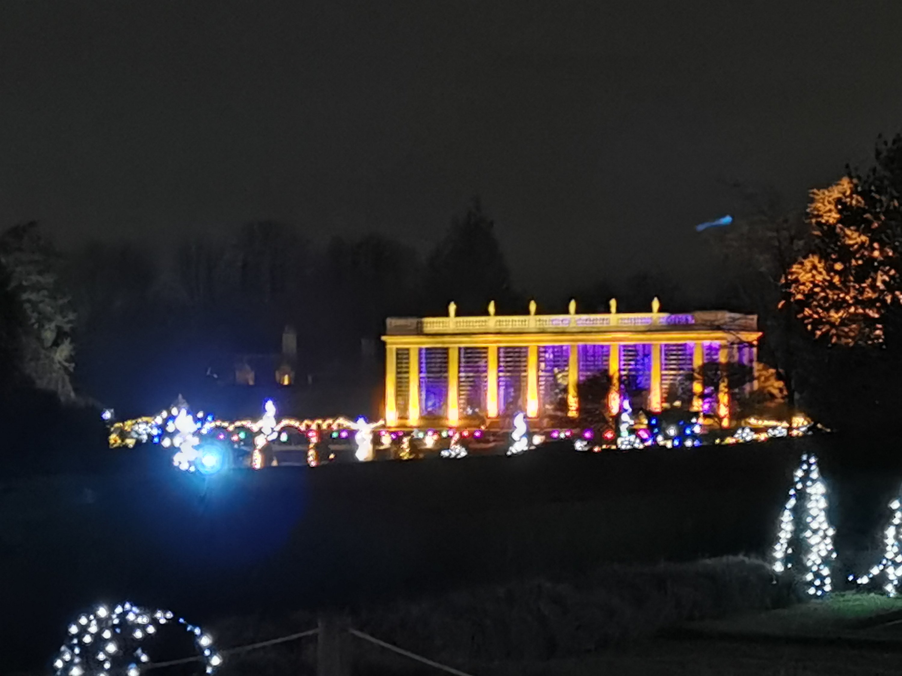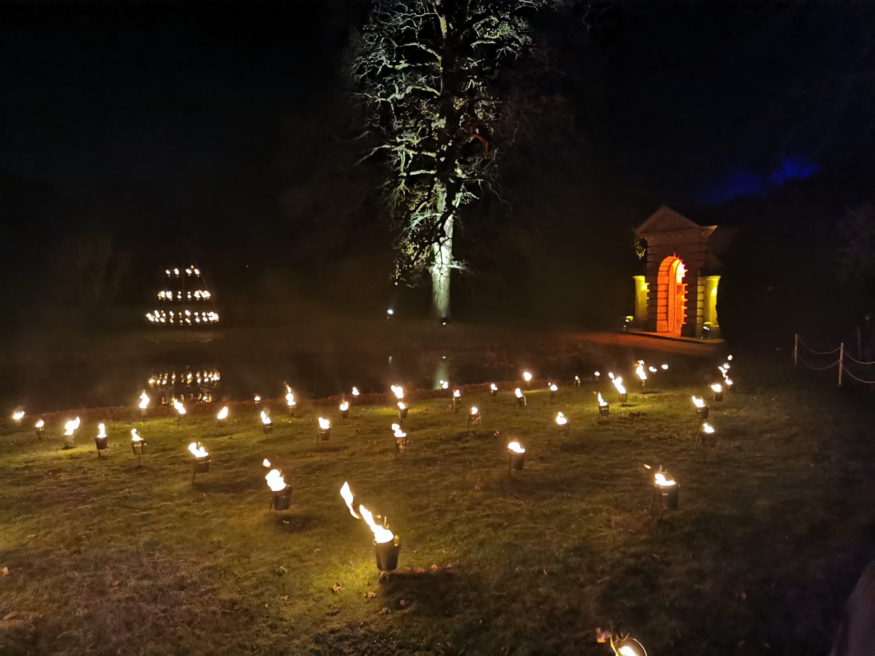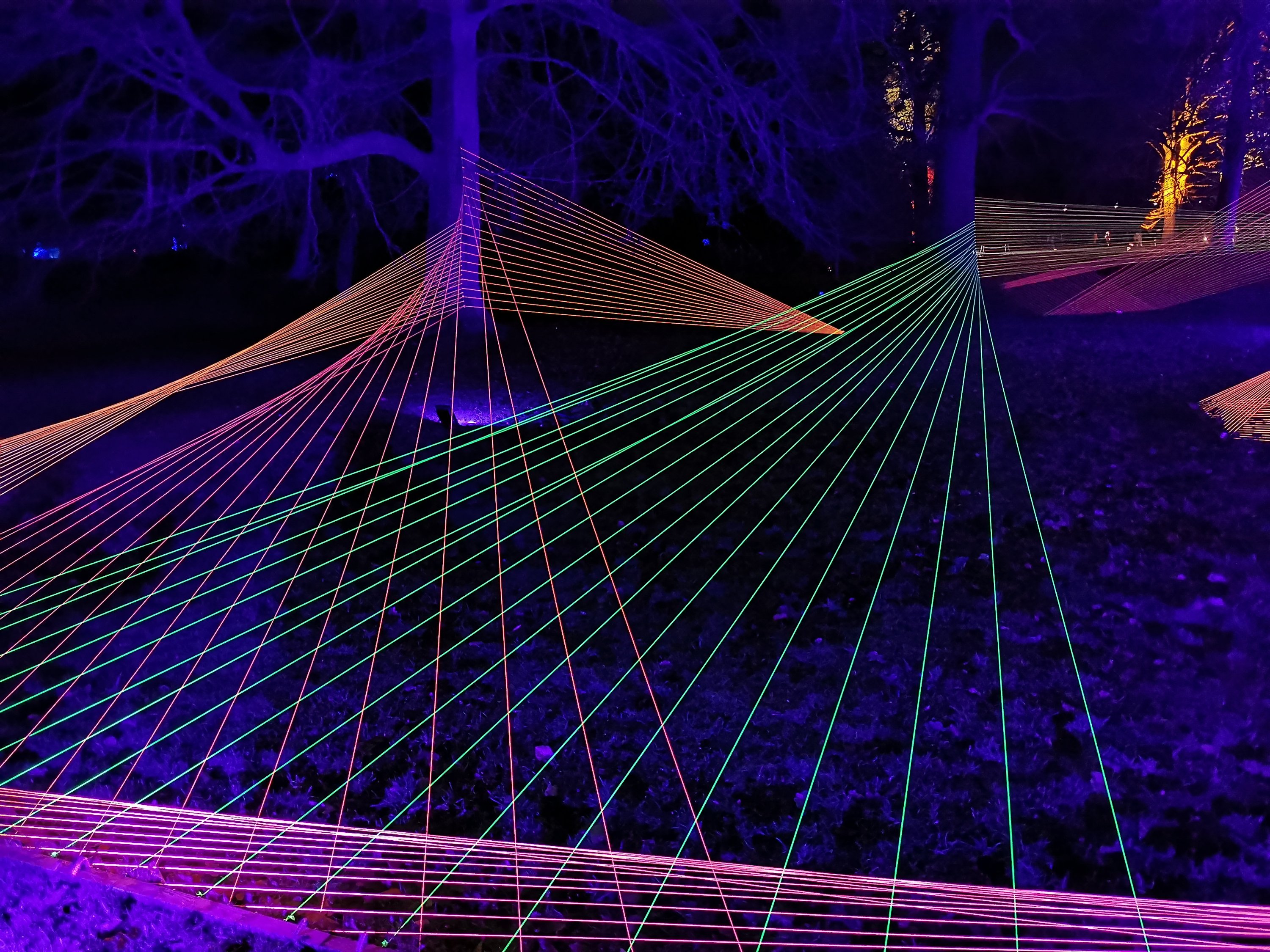 Thousands of lights are used to create a trail around the formal gardens are parkland. We have spotted a new way of using neon guyropes (see the pictures below!)