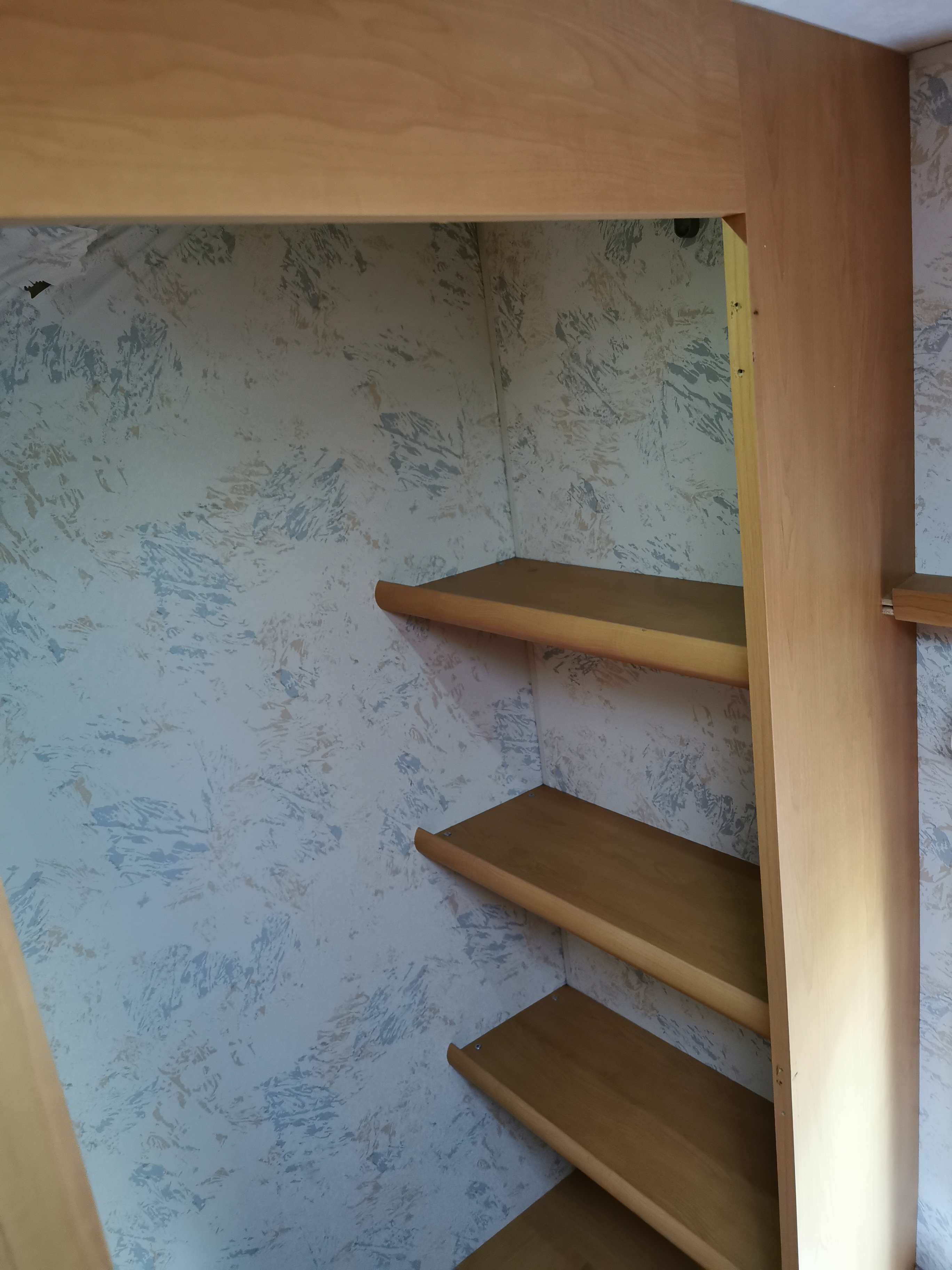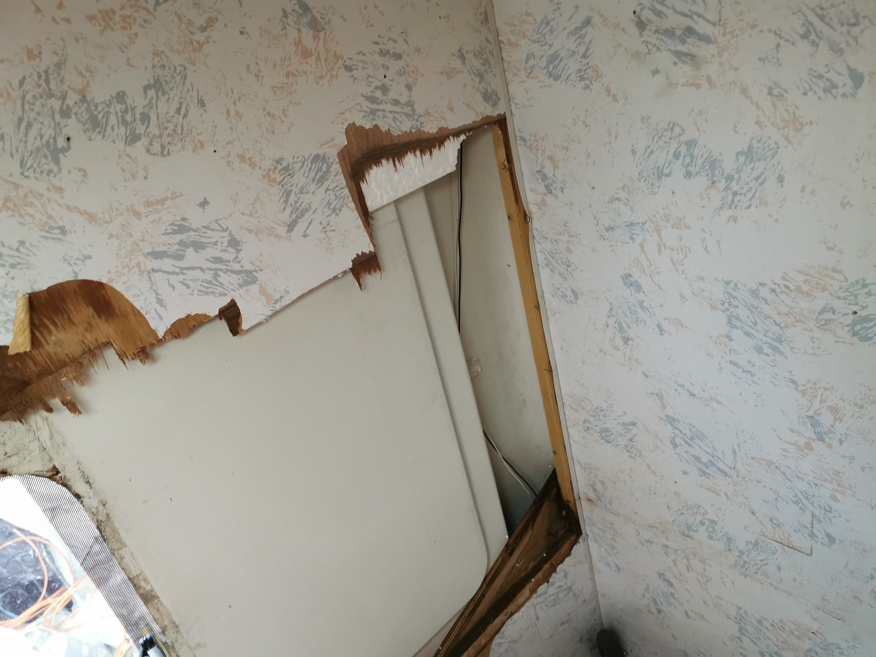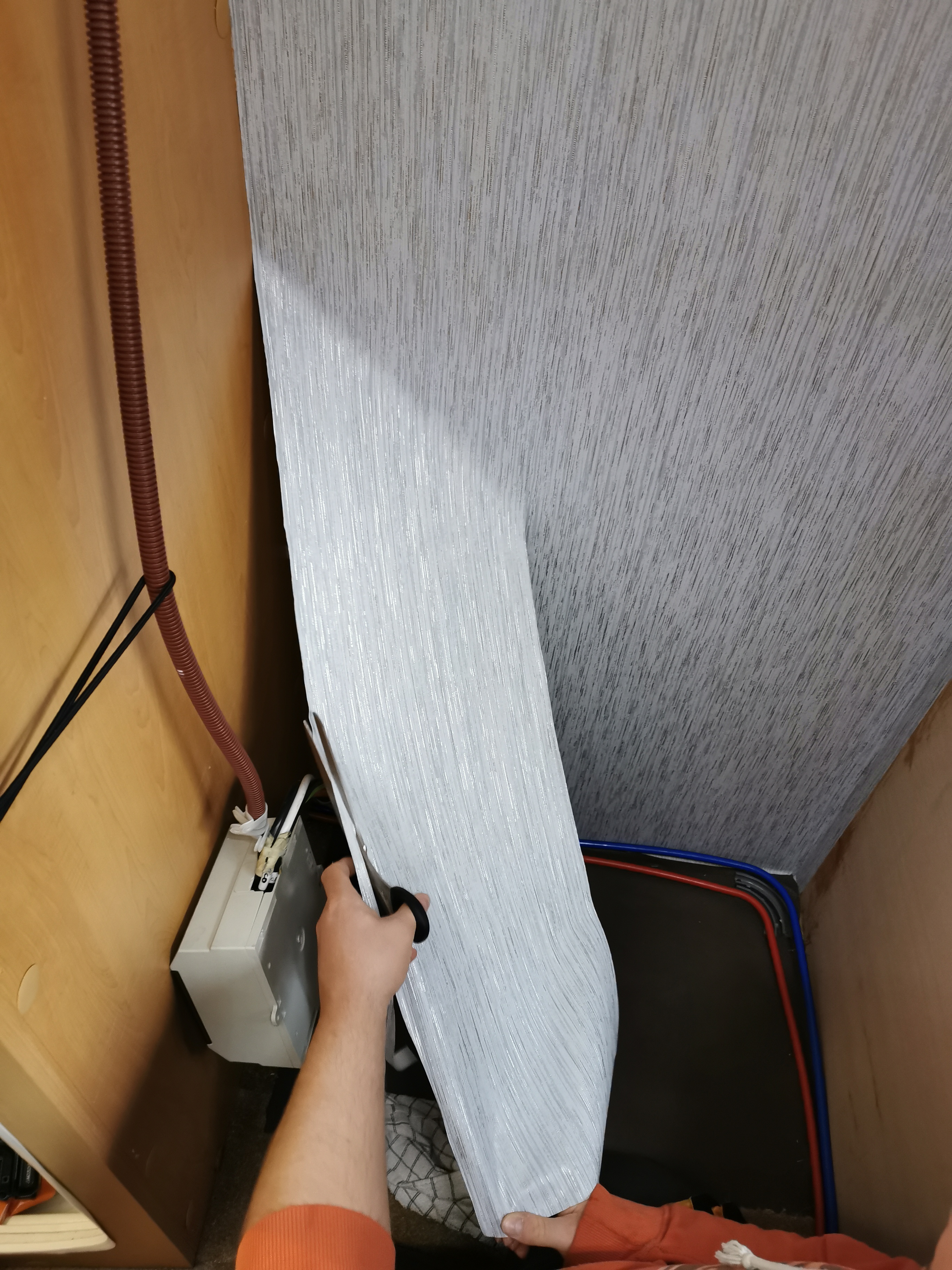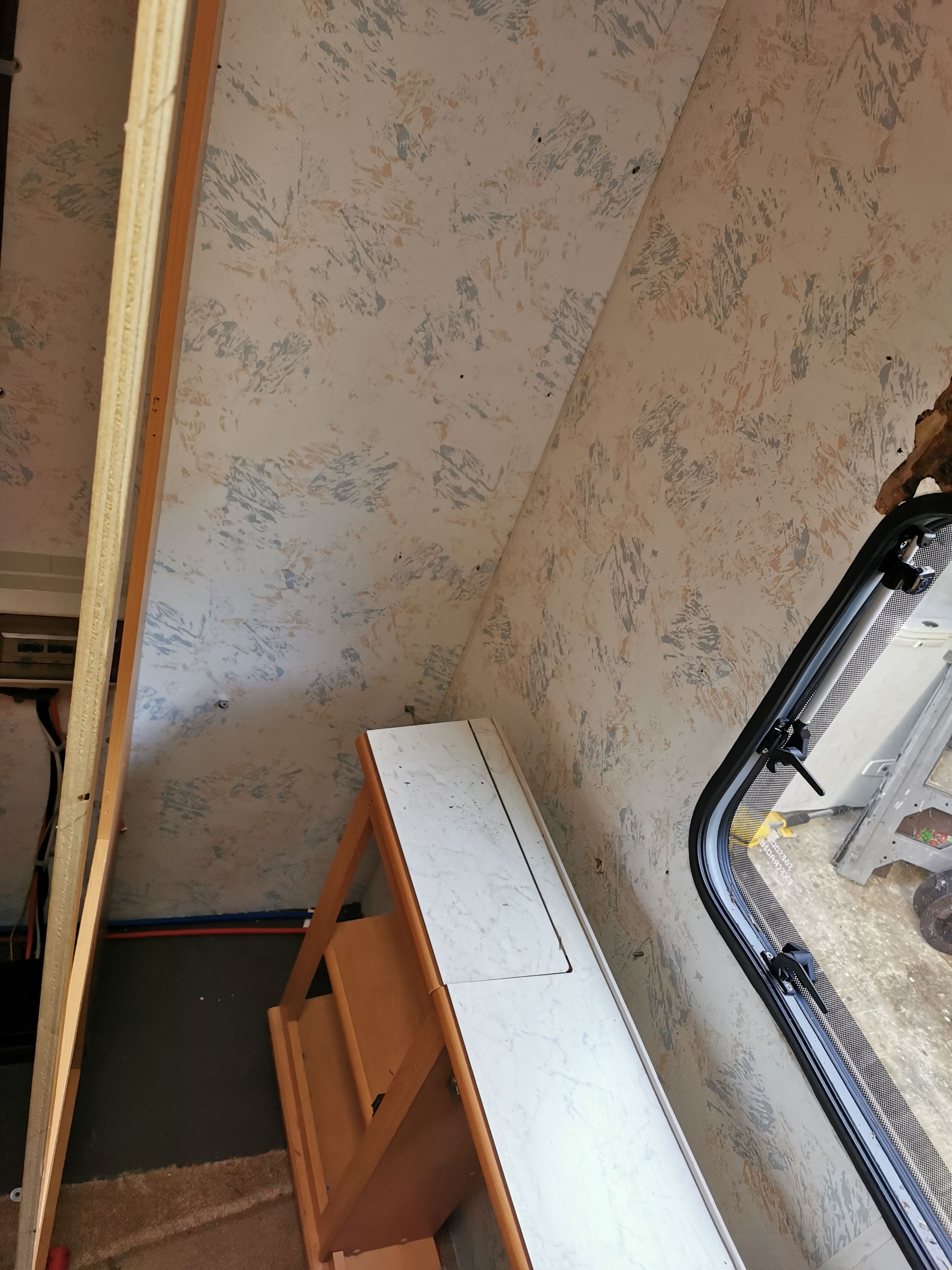 Replacement timber framing needed to be added to support the various cupboards that are attached to the panel. The vinyl wallpaper on both side walls needed to be removed to allow us to add the replacement wall covering.