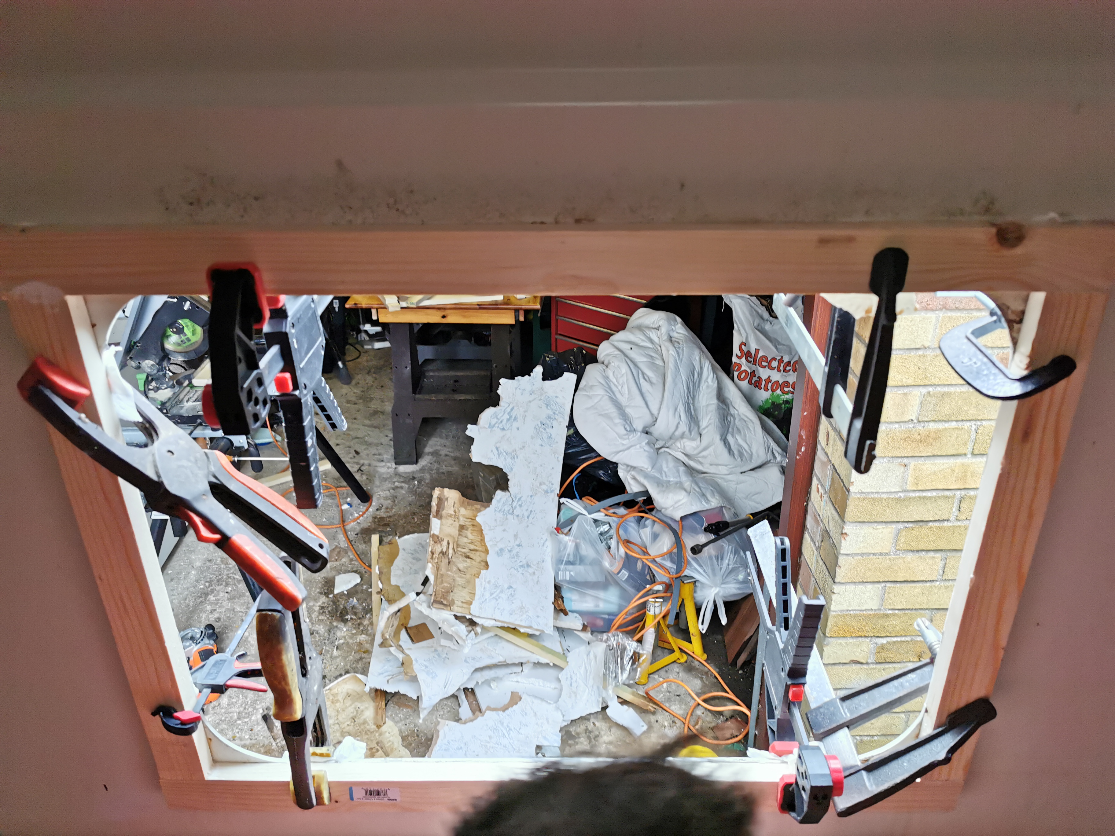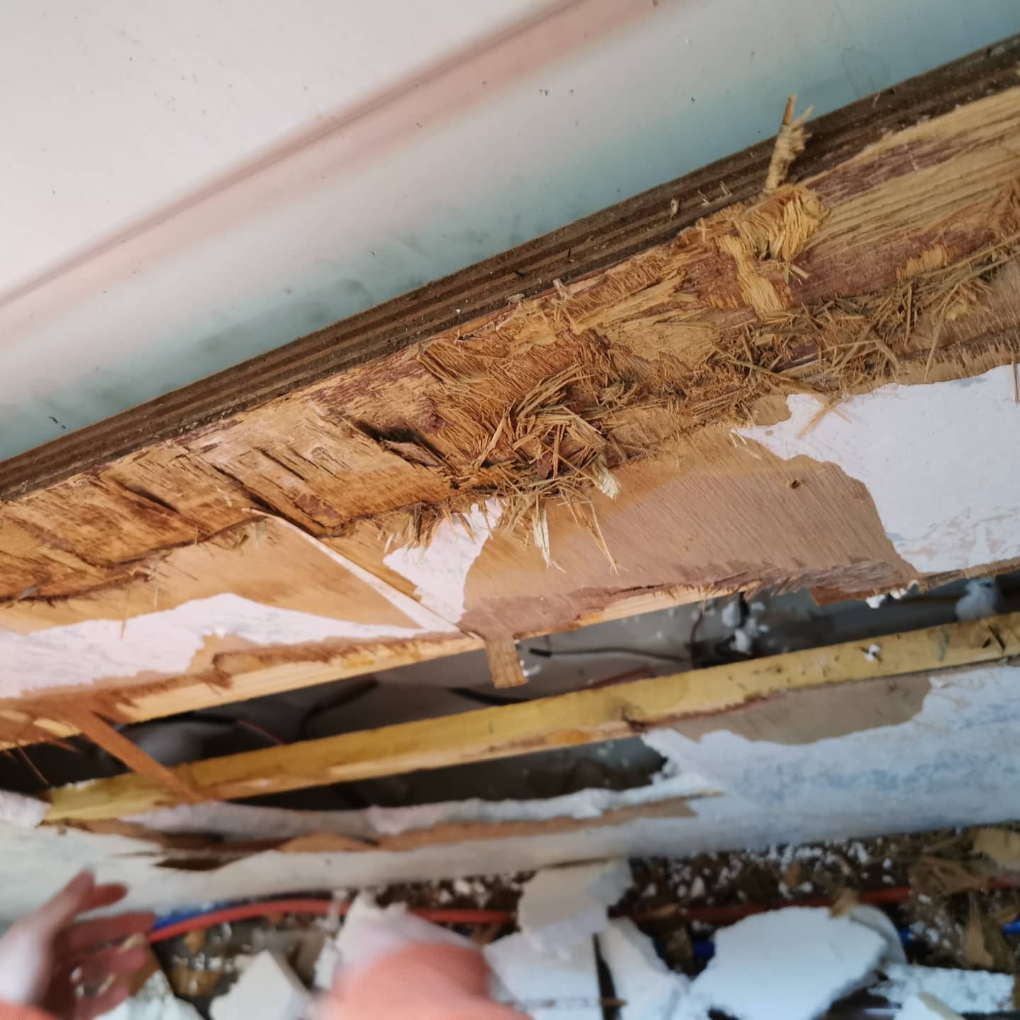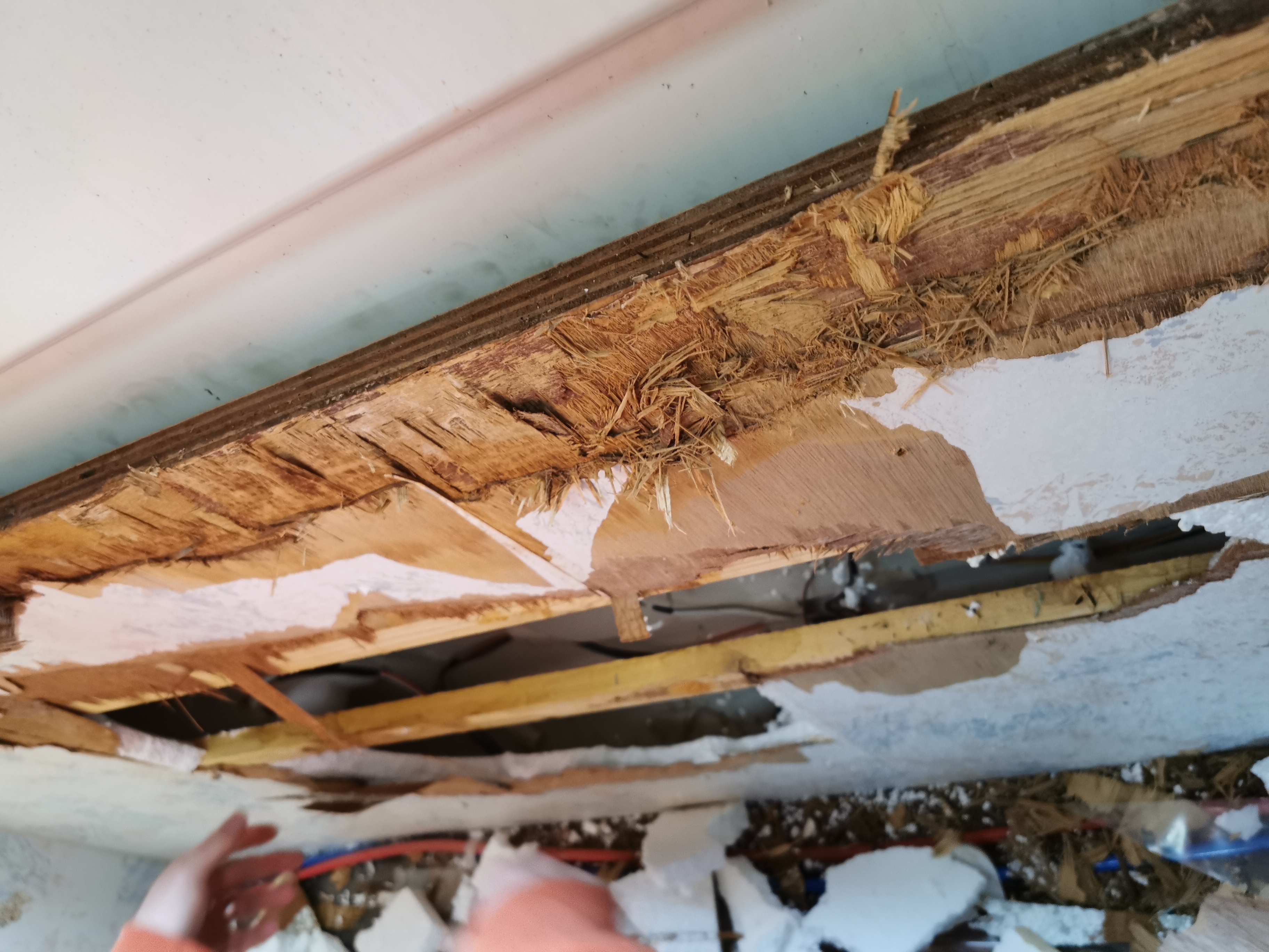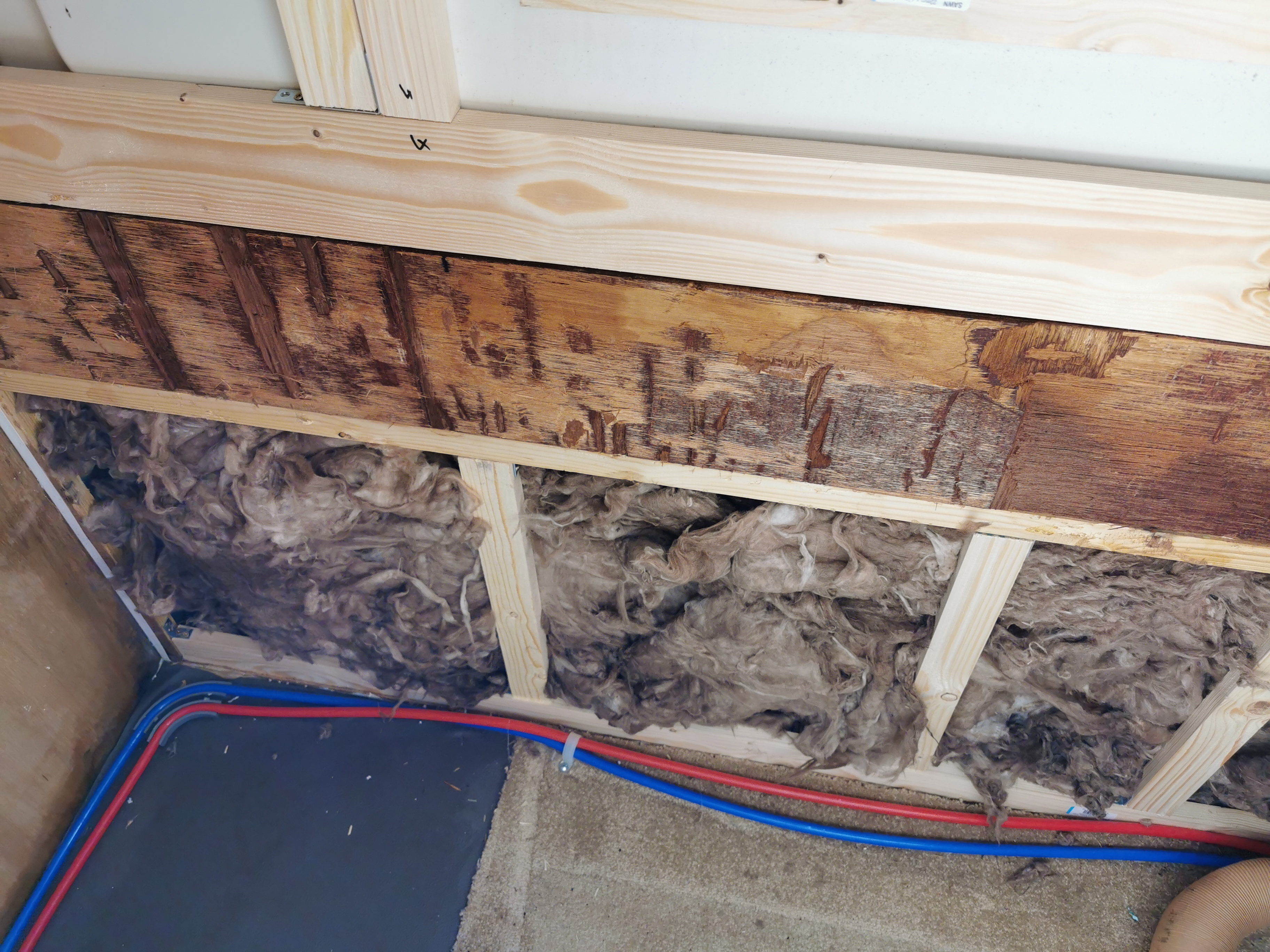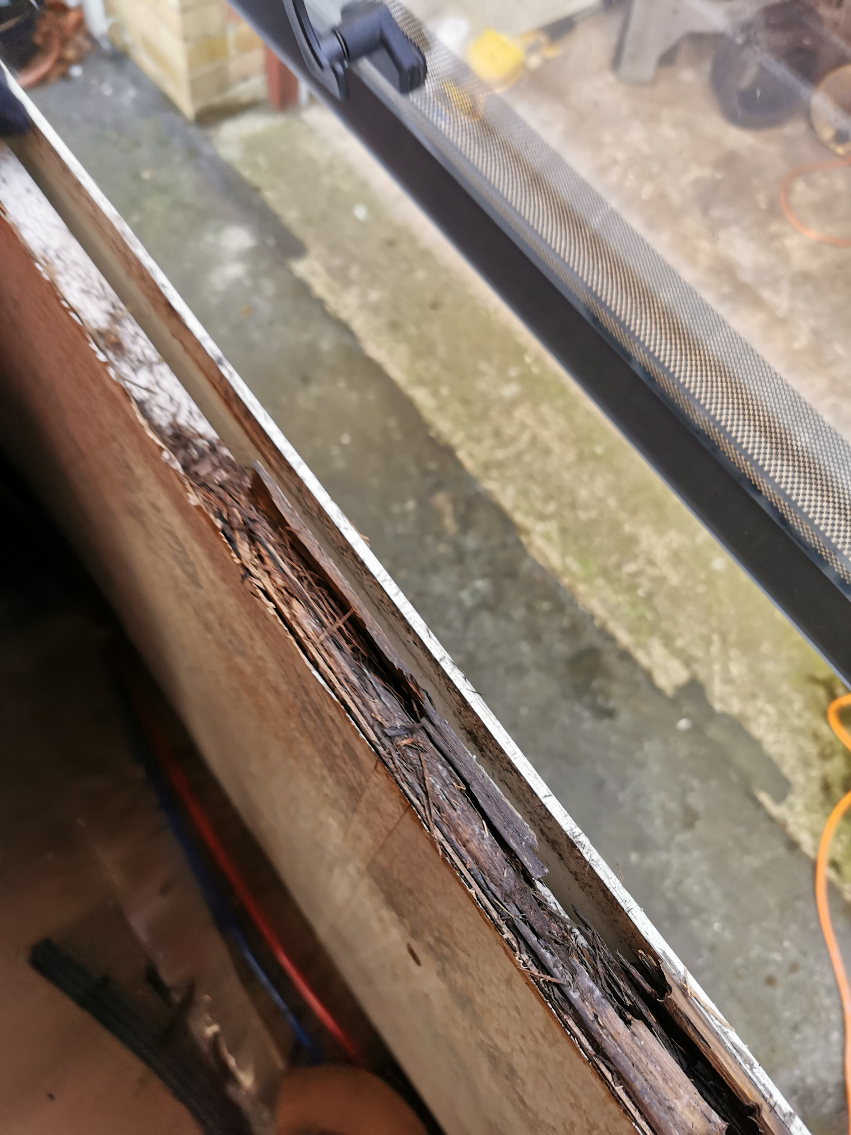 The water ingress had caused large scale rott in the window frame and the surrounding wood. This ment that all of the wall needed to be removed. A large structural cross member had started to decay, so any wood that couldn’t be remove was treated with Ronseal Wood Harder.