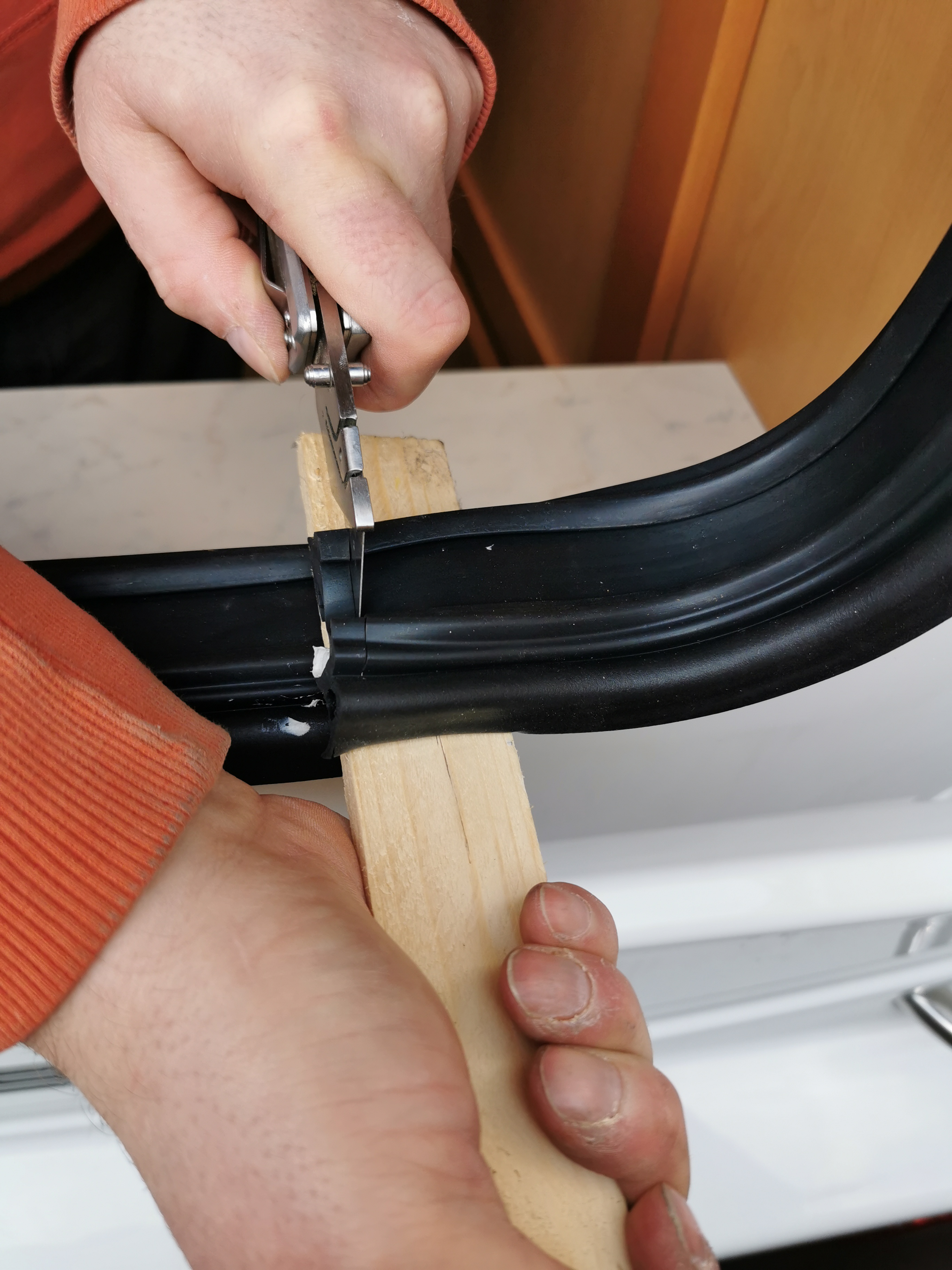 To ensure a good seal around the window we purchased a replacement Window Rubber Seal. This comes prefilled with mastic and the light grey inner-strip is very tricky to get into place.