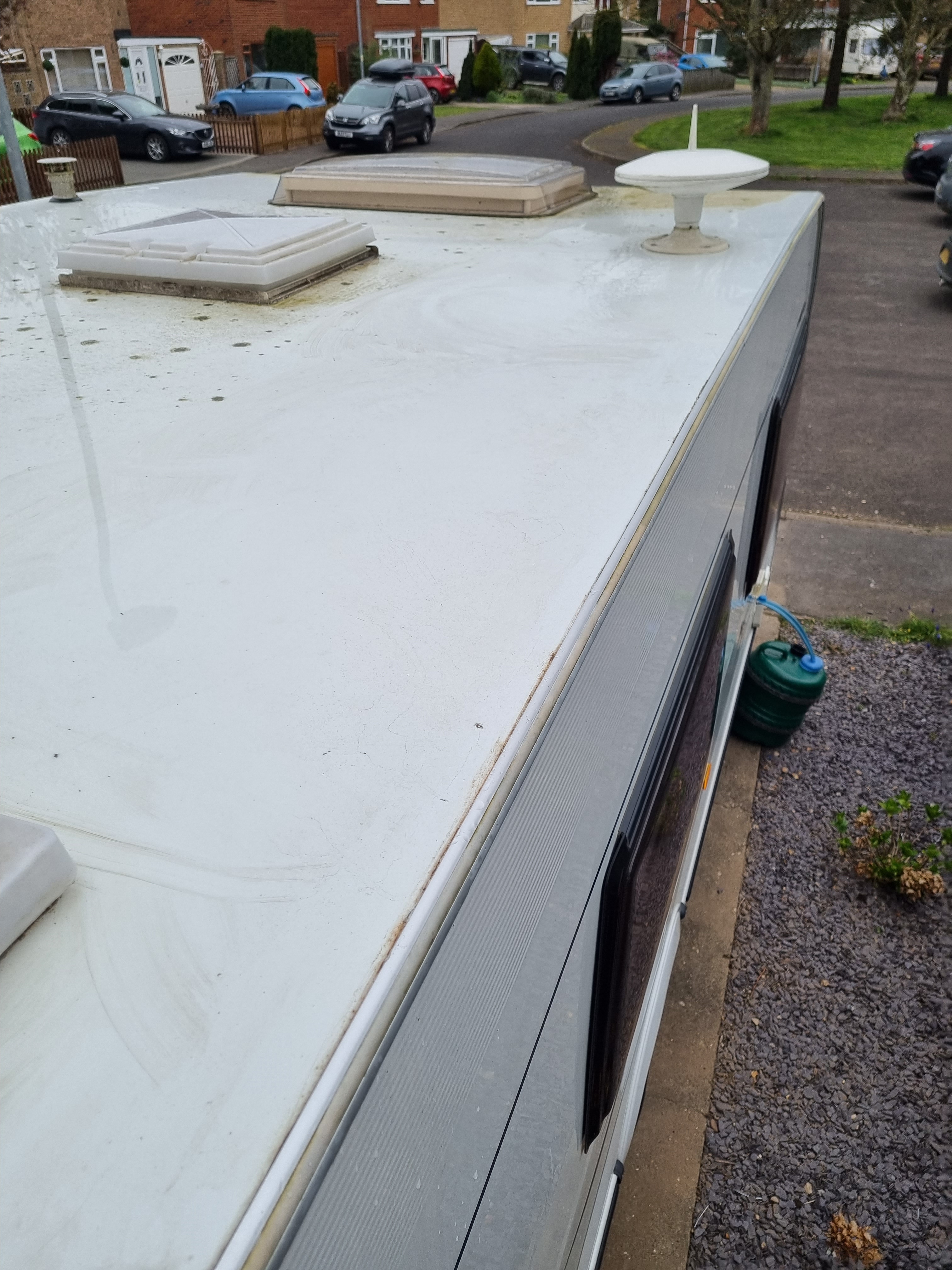 The concentrated cleaner went a long way. You only need 2 caps for 5 litres of warm water. This created a very bubbly mixture which we then used a brush to clean the roof, by the time we had done the whole of the roof the product was on for about 5 minutes despite the instructions saying to leave on for 1 to 2 minutes.