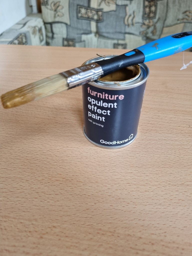 Since purchasing the caravan we have wanted to repaint the edging of the worktops as they had become scratched and marked over the years. We had looked at a variety of different colours and paints fortis project and found the B&Q Goodhome Furniture Paint. This comes in a variety of different colours and paint effects, the one that we chose has an opulent effect and covered the previous paint/varnish.