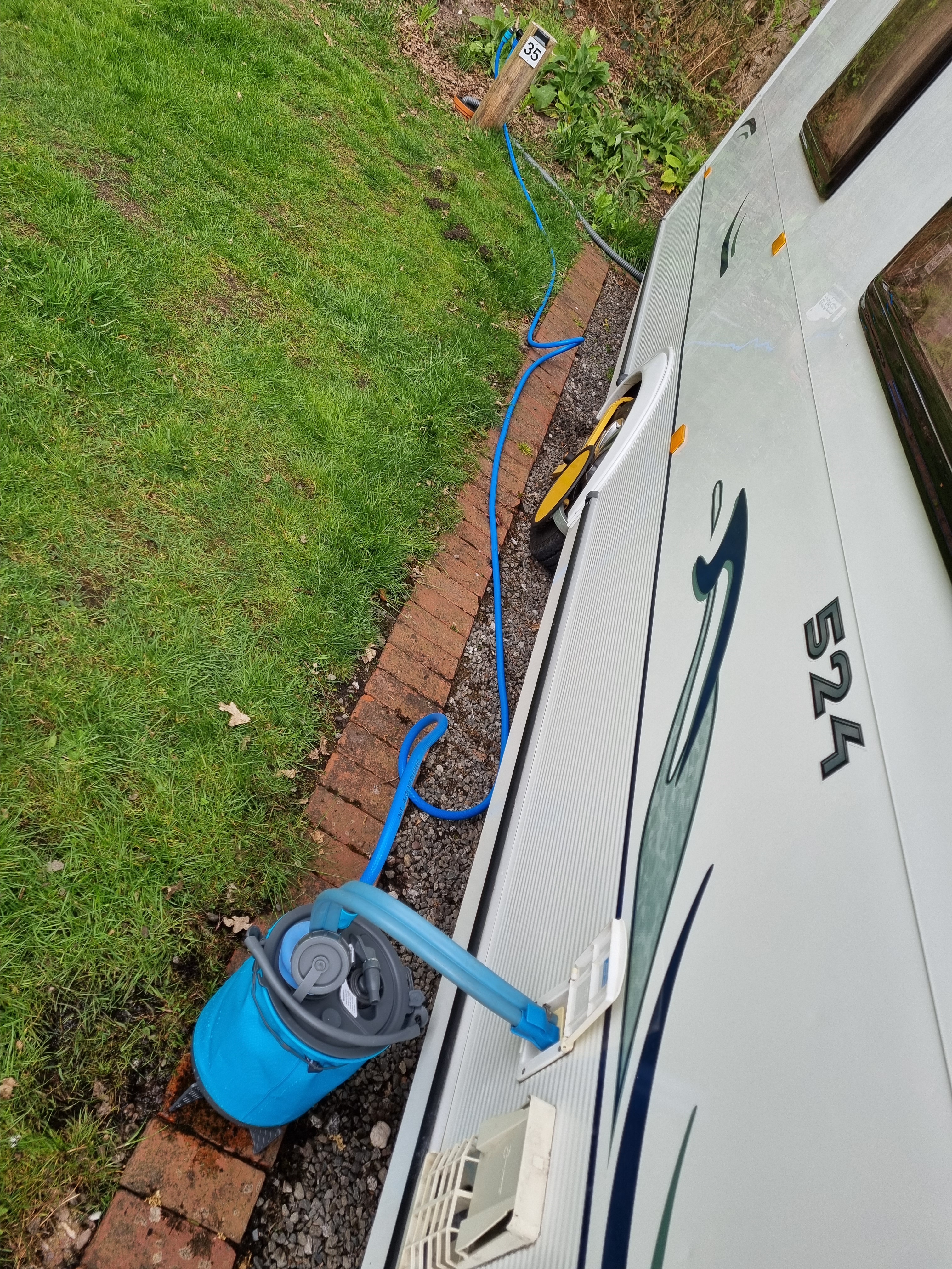 Due to the COVID-19, we booked a fully serviced pitch located at number 35. This pitch is towards to top of the site with its own water tap, grey waste drain and electric point. We used our new Colapz Fresh Mini and Colapz Waste Pipes to connect up making it easy to have showers in the caravan.