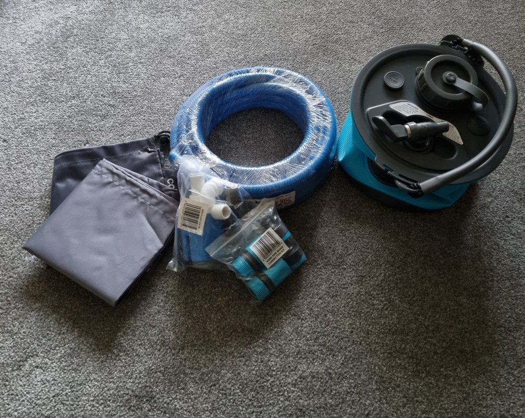 After the Government announcement that campsites were permitted to reopen as of the 12th April without facilities we rushed at the chance to book our first time away in the caravan for 2021. As sites could not use shared facilities we took the decision to buy products to allow us to use service pitches on sites. Our water carrier does not have the means of allowing a mains water inlet we felt the Colapz Fresh Mini kit would be a great solution.