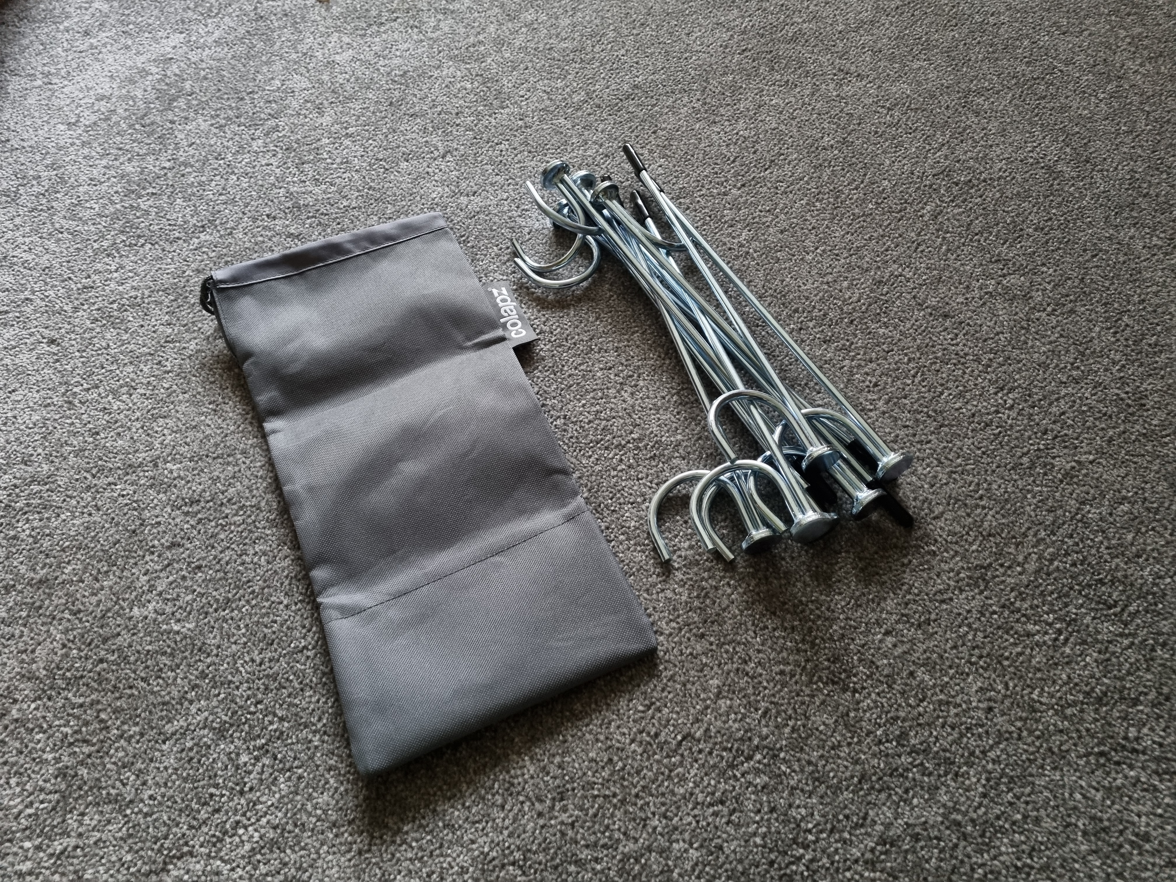 We didn’t use the rock pegs or the flexi trunk on our recent trip but plan to use them on our next time away in the caravan.