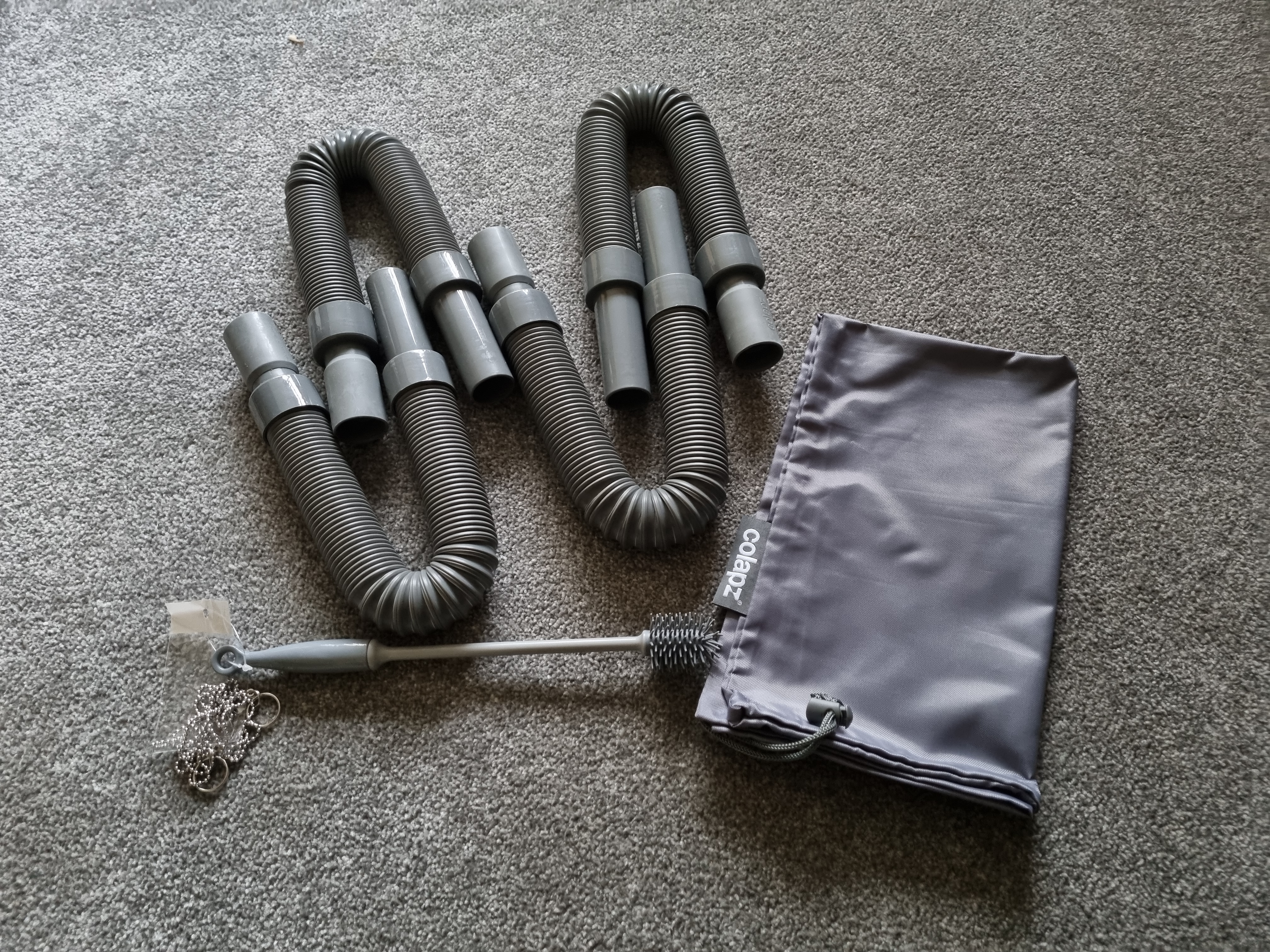 Colapz Extendable Waste Pipes are great for use on service pitches. The kit that we purchased includes 4 x 1metre length pipes. When collapsed each pipe is 50cm long but can extend to 1metre. Like most products from Colapz these come with a handy bag and even a silicone brush fitted with a chain to clean inside each pipe after use.