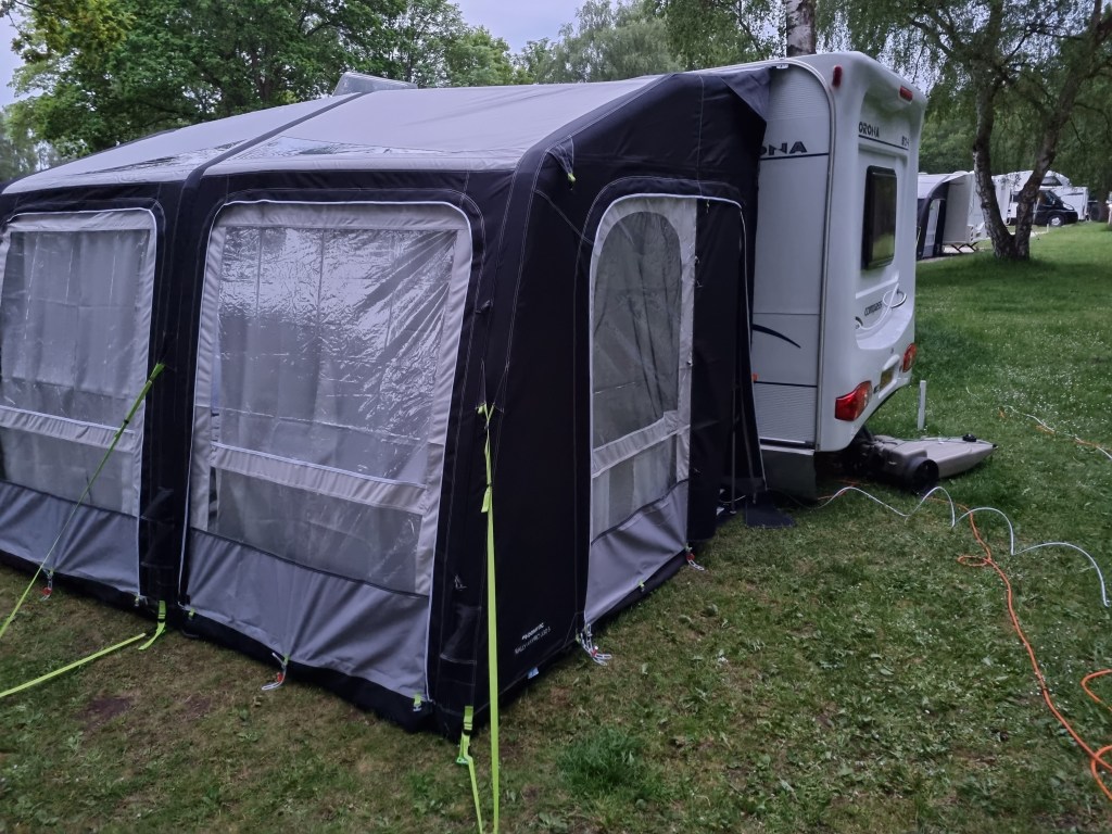 When we first started to research caravans we decided that an air awning was definitely the way forward for us. They have less heavy poles to carry around and seemed to go up very quickly. When we purchased our van it came with a Bradcot tradition awning which we were more than happy with to get us started.