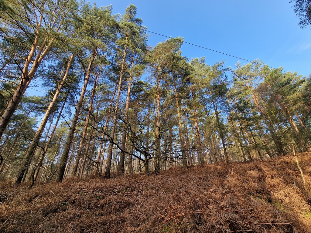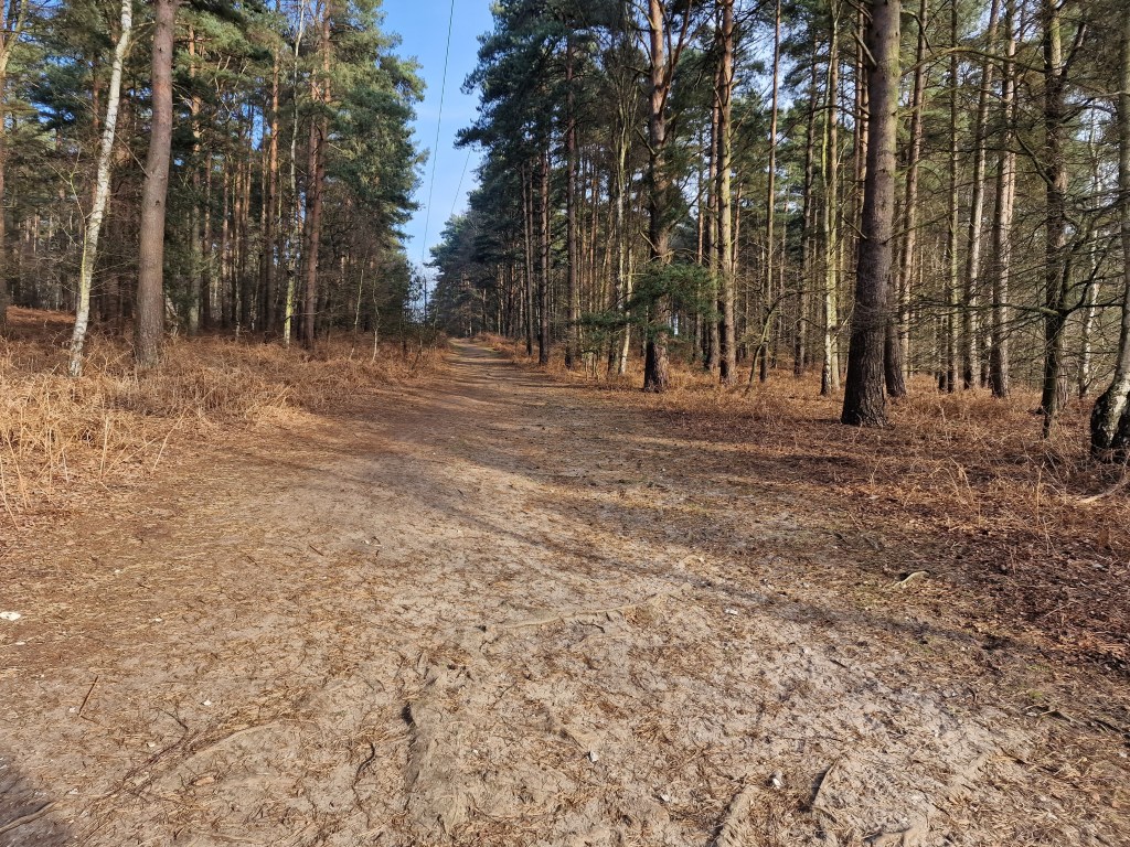 The pathway ends at the entrance/exit of the CCC site. Turn right onto the unnamed Road and continue to the crossroads with Double Lodges Road and Common Road. Turn left onto Double Lodges Road and then follow the yellow waymarkers.