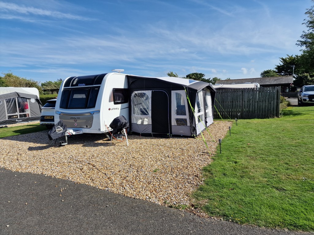 All of the hardstanding pitches were ample size for our caravan, awning, and car to all sit on the gravel. Our pitch (and we assume the rest of the hardstanding) had a large level of gravel, which did make pegging the awning down a little challenging. To get the pegs to remain in the ground, we first needed to scrap away some of the gravel before hammering the rock pegs in.