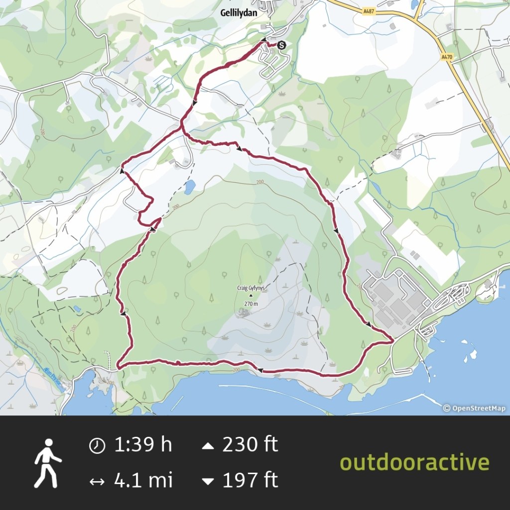 We started off at the Coed Y Llwyn Caravan Llwyn club campsite and turned left out of the site entrance and walked up the lane. The route was easy to follow using the national cycle way markers and then the yellow way markers. We used our phones at the Outdooractive app to check that we were heading in the right direction.